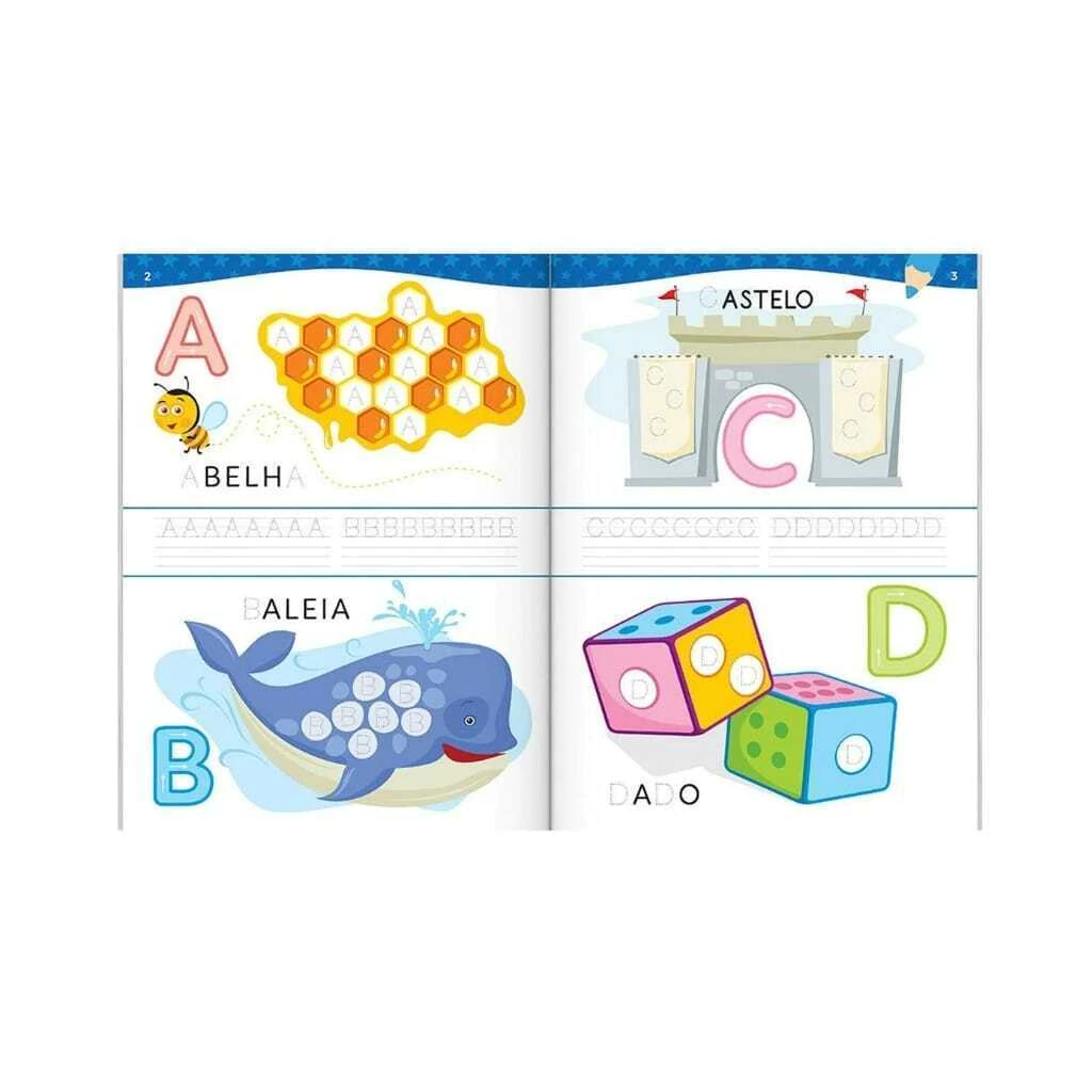 Esta é uma coleção para auxiliar a criança na fixação das letras do alfabeto com letra de fôrma, letra bastão e Letra Cursiva, bem como dos numerais e serve como apoio ao aprendizado formal da escola. É uma maneira de treinar as letrinhas, divertindo-se ao mesmo tempo.